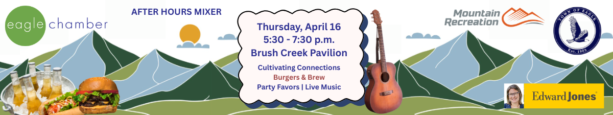 The Town of Eagle, Mountain Recreation and Jessie Steinmetz of Edward Jones are teaming up for a fun networking event with the Eagle Chamber of Commerce. Join us for burgers & brews, live music, great giveaways and more!